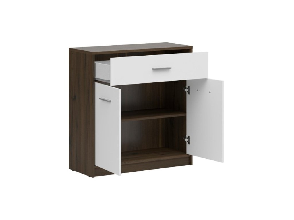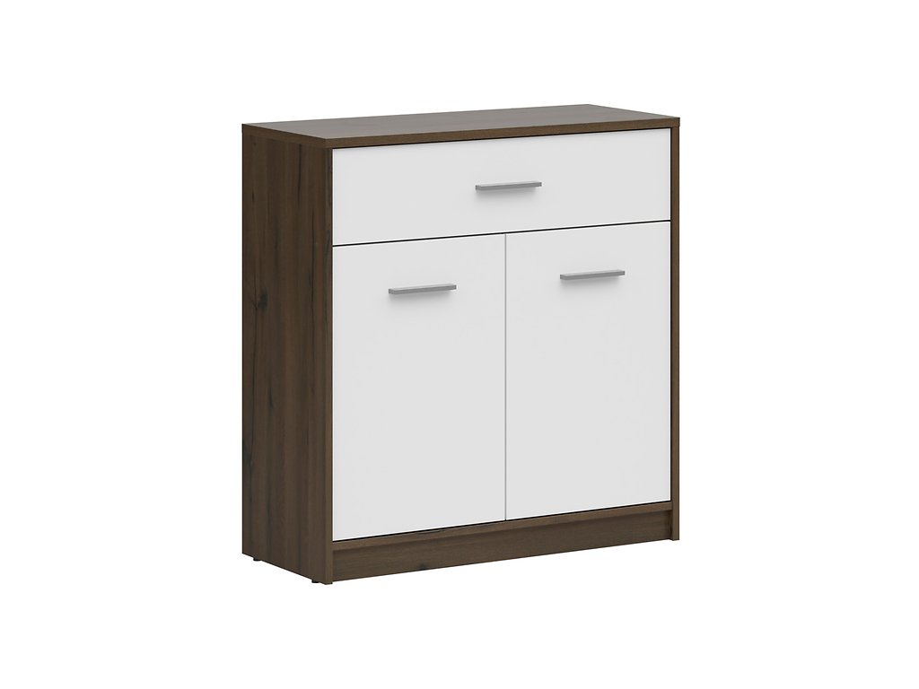 Moderní, nebo klasicky zařízený interiér? S komodou NEPO PLUS si hravě poradíte s oběma typy. Nábytek je vyroben z lamina v barevném provedení dub ušlechtilý/bílá. Úložný prostor je v podobě zásuvky a police uschované za dvířky. Dvířka jsou opatřena stříbrnou plastovou úchytkou. Dodáváno v demontu.