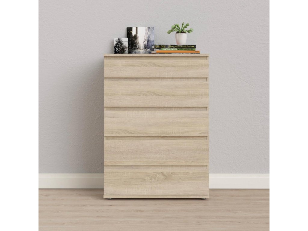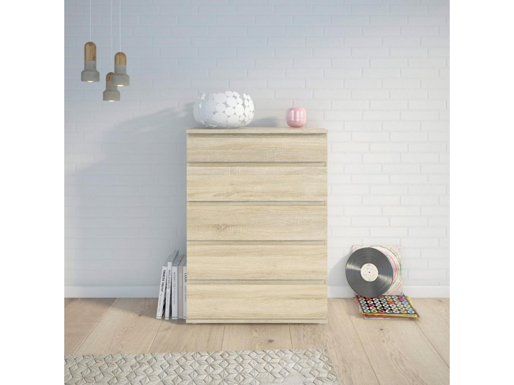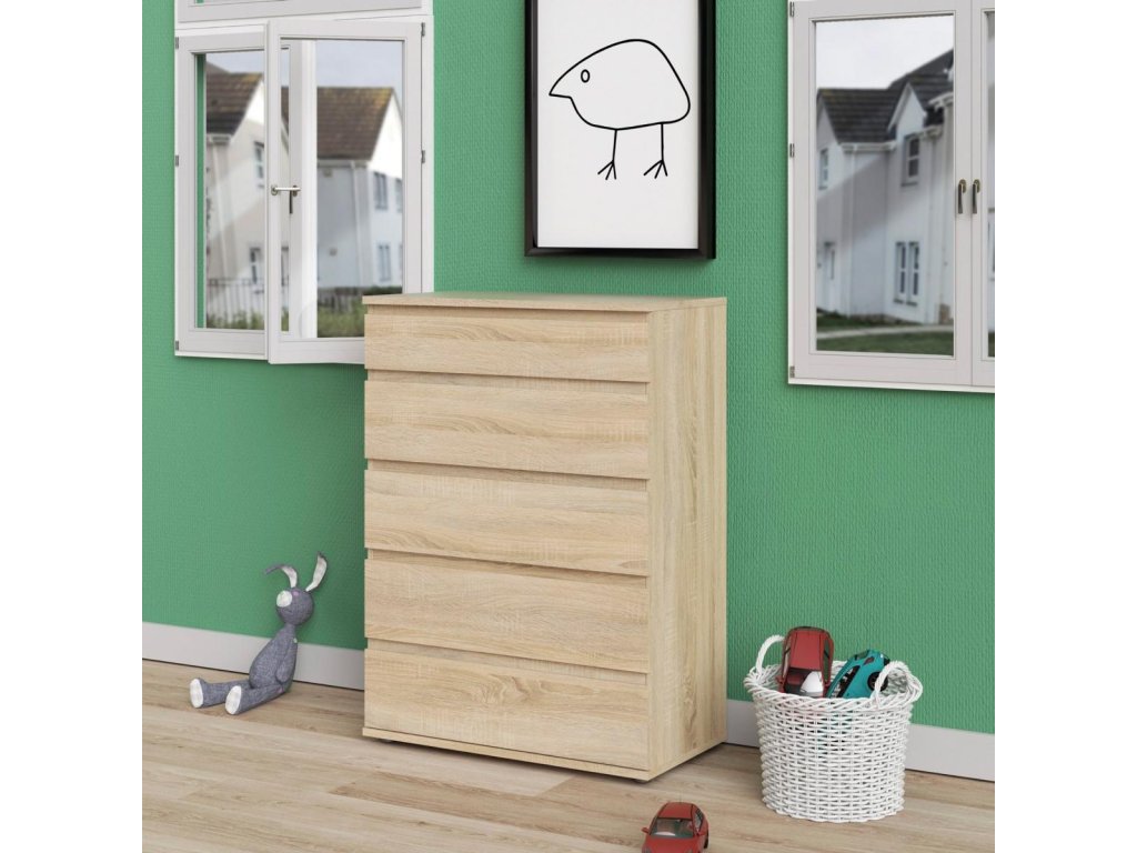 Komoda Nibby je skvělou variantou jak rošířit úložný prostor, kterého v každé domácnosti není nikdy dost. Komoda Nibby nabízí spoustu možností využití nejen v ložnici nebo obývacím pokoji, ale také v dětském pokoji, nebo v předsíni. Můžete do ní uložit např. oblečení, hračky, dokumenty, deskové hry, sbírku CD, nebo nezaložené fotografie. Komodu nabízíme v několika dekorech a jistě si najdete tu pravou, která bude ladit s Vaším interiérem. Komoda je vyrobená z lamina, které je velmi snadné na údržbu. Při výrobě je kladen důraz na ekologii. Je vyráběna v souladu s ohledy na životní prostředí a řadí se tak k eco-friendly výrobkům. Komoda je dodávaná v demontu. Součástí balení je montážní návod včetně všech potřebných spojovacích prvků. Vyobrazené doplňky a dekorace nejsou v ceně.