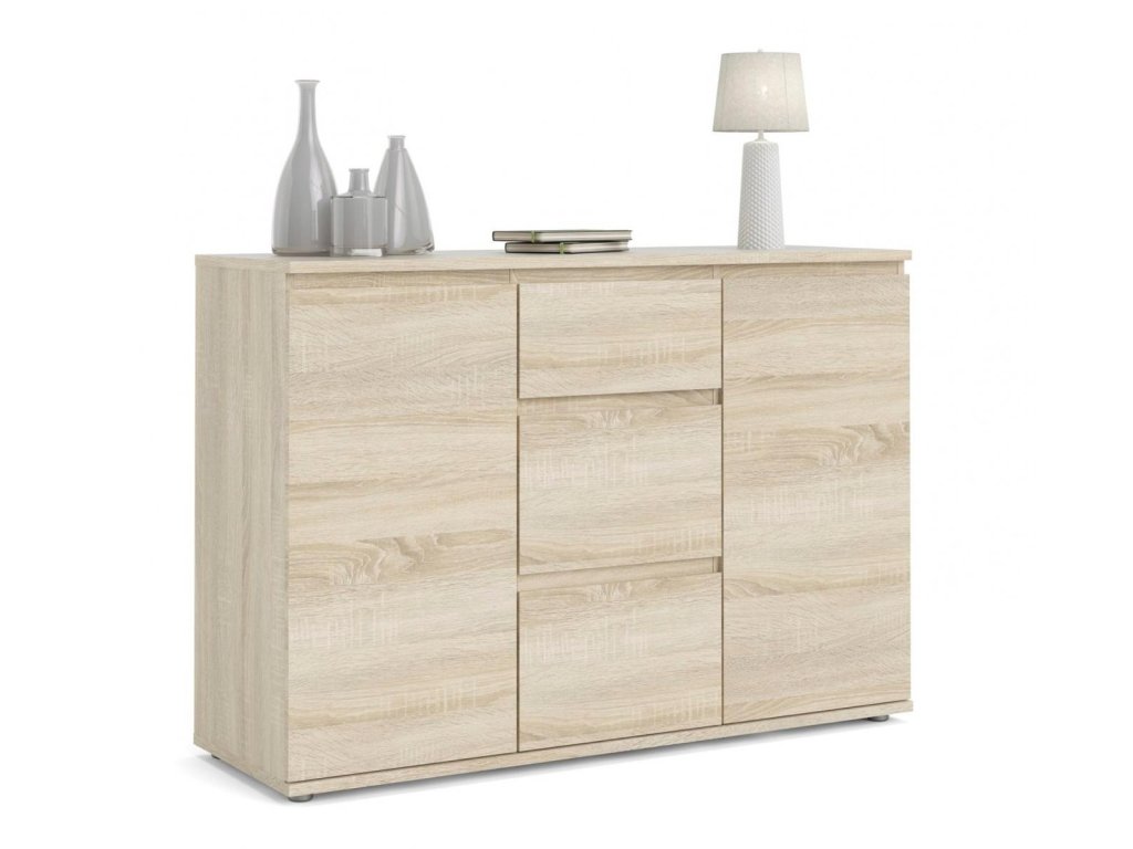 Komoda Nibby je skvělou variantou jak rošířit úložný prostor, kterého v každé domácnosti není nikdy dost. Komoda Nibby nabízí spoustu možností využití nejen v ložnici nebo obývacím pokoji, ale také v dětském pokoji, nebo v předsíni. Můžete do ní uložit např. oblečení, hračky, dokumenty, deskové hry, sbírku CD, nebo nezaložené fotografie. Komodu nabízíme v několika dekorech a jistě si najdete tu pravou, která bude ladit s Vaším interiérem. Komoda je vyrobená z lamina, které je velmi snadné na údržbu. Při výrobě je kladen důraz na ekologii. Je vyráběna v souladu s ohledy na životní prostředí a řadí se tak k eco-friendly výrobkům. Komoda je dodávaná v demontu. Součástí balení je montážní návod včetně všech potřebných spojovacích prvků. Vyobrazené doplňky a dekorace nejsou v ceně.