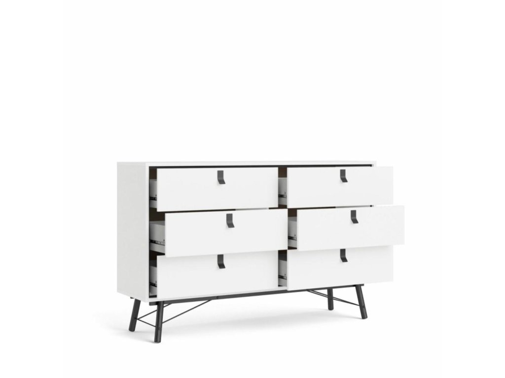 Komoda Rain je skvělou variantou, jak rozšířit úložný prostor ve Vašem bytě a zároveň mu ponechat vzdušnost. Komoda je vyráběná v souladu s ohledy na životní prostředí a navíc je praktická a funkční. Provedení komody nabízí dostatek úložného prostoru a spoustu možností využití nejen v obývacím pokoji. Výborně se hodí také do ložnice, ale i do pracovny či předsíně. Nožky, na kterých komoda stojí, jí dodávají nádech oblíbeného retro designu a prostor pod komodou se lépe udržuje v čistotě. Je vyrobená z lamina, které je odolné a snadné na údržbu a můžete ji doplnit dalšími prvky ve stejném designu. Cena je u vedena za komodu, která je vyobrazená na úvodní fotografii. Vyobrazené dopňky a dekorace nejsou v ceně.