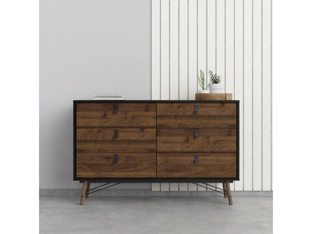 Komoda Rain 6s velká černá MAT/ořech
