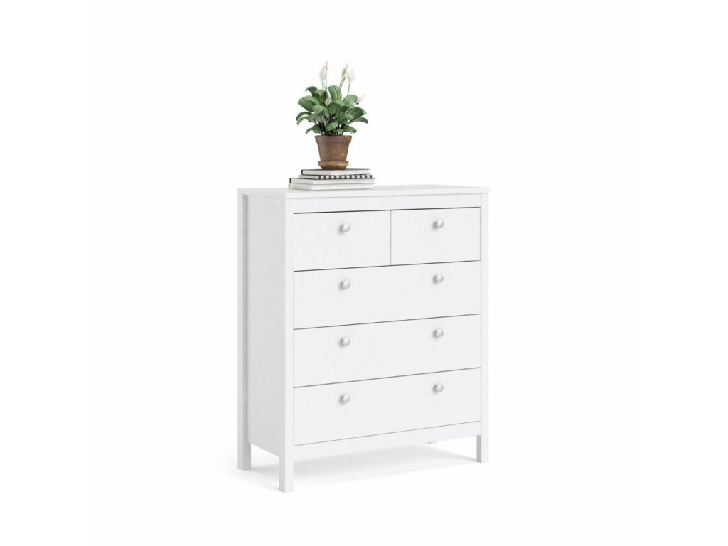 Komoda Real skvěle zapadne do moderního i stylového interiéru. Stačí změnit drobný detail, kterým jsou v tomto případě úchytky a z jemného stylu provence, rázem budete mít moderní kus, který skvěle zapadne např. do industriálního stylu. Oba typy úchytek, které jsou vyobrazené na fotografii, jsou součástí balení. Komoda je vyrobená z lamina, které je odolné a snadné na údržbu.Vyobrazené dopňky a dekorace nejsou v ceně.