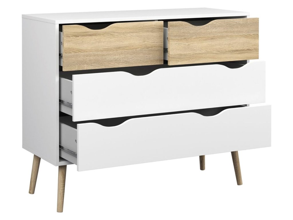 Pokud máte rádi Retro styl, pak je tato kolekce nábytku stvořena pro Vás. Nábytek je zhotoven z lamina o tl. 15 mm, které je odolné a snadné na údržbu. Díky rozmanitosti nabízených prvků, které kolekce Retro nabízí, si můžete sestavit obývací pokoj, jídelnu, ložnici, kancelář, nebo předsíň. Komoda díky svému provední nabízí univerzální použití a dostatek úložného prostoru. Díky tomu budete mít doma přehledný a organizovaný pořádek. Retro vzhled zdůrazňují vysoké šikmé nožky a obloukové výřezy místo úchytek. Komodu nabízíme ve třech barevných provedeních. Je dodávaná v demontu a součástí je montážní plánek včetně všech potřebných spojovacích materiálů. Vyobrazené dekorace nejsou v ceně.