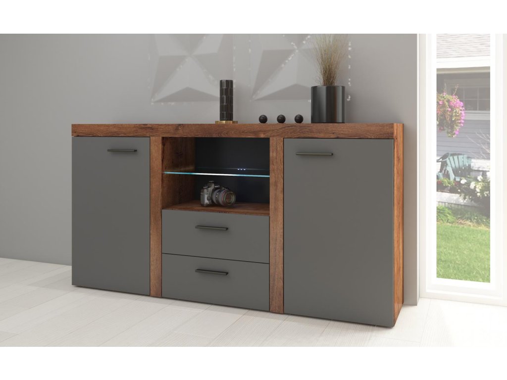 Komoda Rizo je nejen skvělým doplňkem k bytové stěně Rizo. Stejně výborně poslouží jako samostatný kus nábytku. Komoda má univerzální využití a nabízí dostatek úložného prostoru. Komoda je vyrobena z odolného a stálobarevného lamina. Komoda je dodávaná v demontu. Součástí balení je schematický montážní návod, včetně všech potřebných spojovacích prvků. Vyobrazené doplňky, LED osvětlení a dekorace nejsou v ceně.