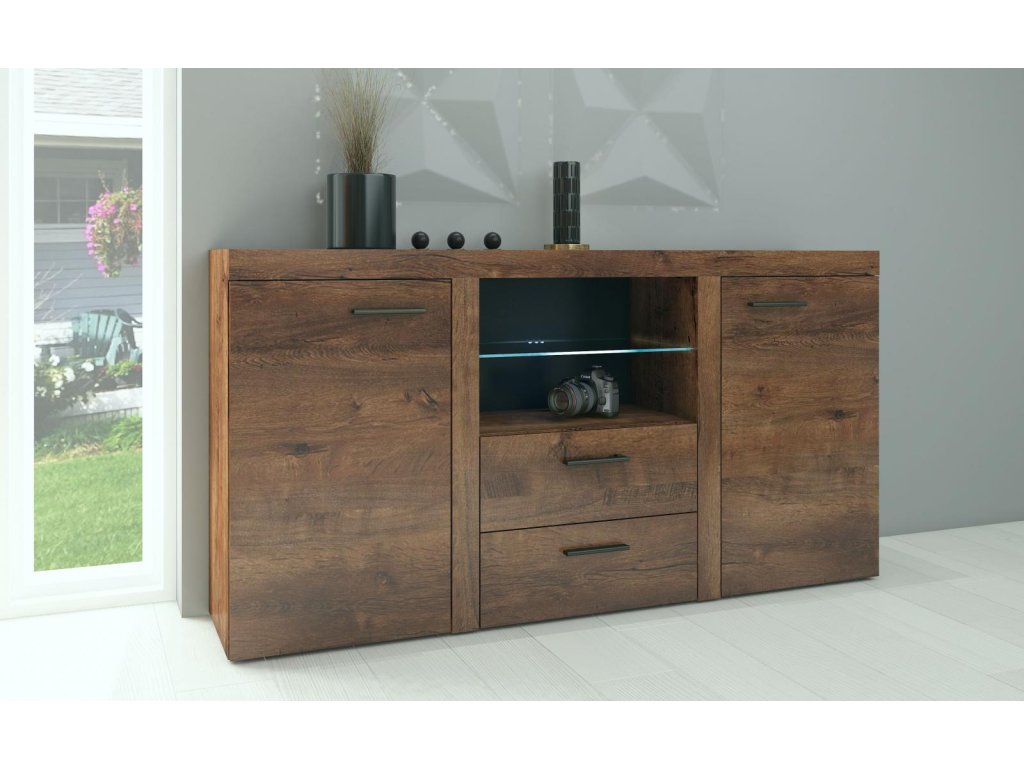 Komoda Rizo je nejen skvělým doplňkem k bytové stěně Rizo. Stejně výborně poslouží jako samostatný kus nábytku. Komoda má univerzální využití a nabízí dostatek úložného prostoru. Komoda je vyrobena z odolného a stálobarevného lamina. Komoda je dodávaná v demontu. Součástí balení je schematický montážní návod, včetně všech potřebných spojovacích prvků. Vyobrazené doplňky, LED osvětlení a dekorace nejsou v ceně.