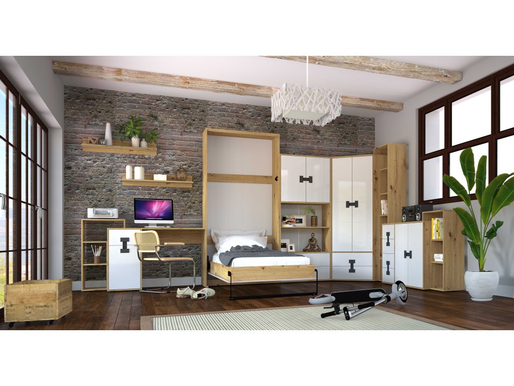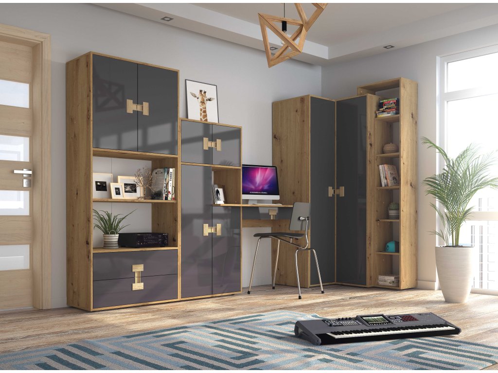 Moderní, elegantní, čisté a útulné, to přesně vzbuzuje nábytek z kolekce INDEX. Různě kombinovatelná kolekce umožní vytvořit Vašim dětem i mládeži nádherné prostředí, kde se budou opravdu cítit jako doma. Korpus nábytku je vyroben z kvalitní dřevotřísky barvy dub artisan mat, která je odolná proti poškrábání. Barevné provedení dveří je možné libovolně kombinovat v barvách bílý lesk, dub artisan lesk a šedý lesk. Barevné provedení úchytek lze rovněž libovolně kombinovat a to v barvách bílá, černá, dub a šedá.