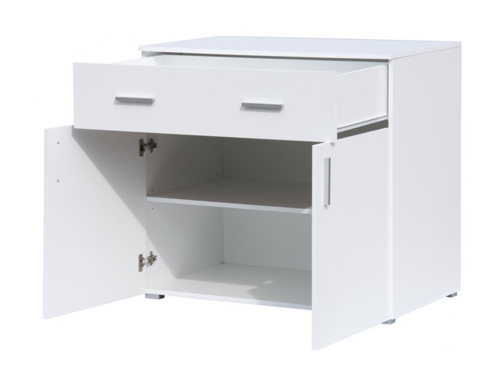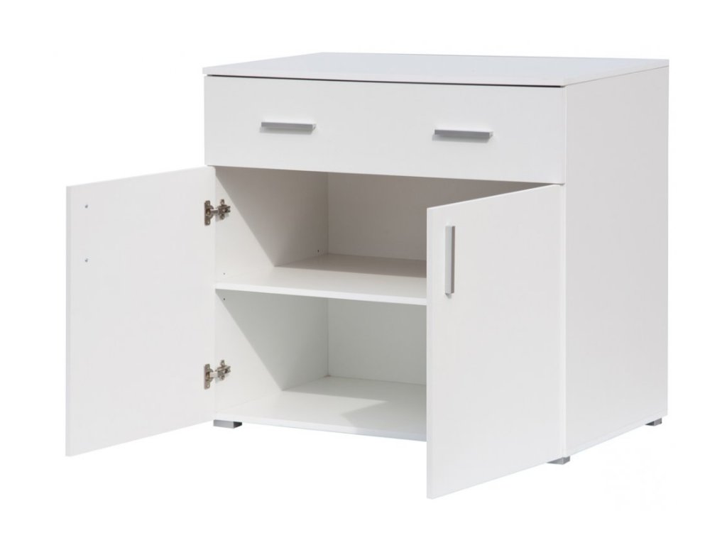 Přebalovací komoda Scarlett je vyrobena z laminátu. Komoda má jednu zásuvky s výsuvem a prostornou skříňku s policí. Přebalovací nástavec lze na komodu připevnit vlevo nebo vpravo a je standardní součástí komody. Až nebude přebalovací nástvavec potřeba lze komodu nadále používat i ve studentském pokojíčku.