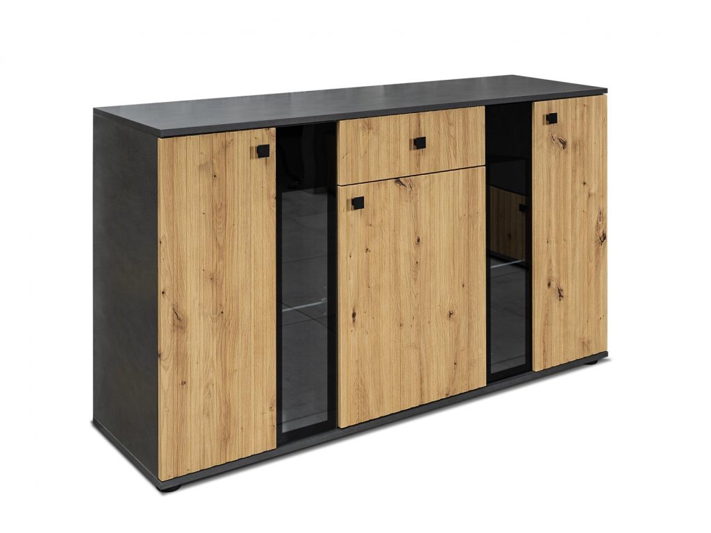 Komoda Silos/dub artisan/černá/melamina
