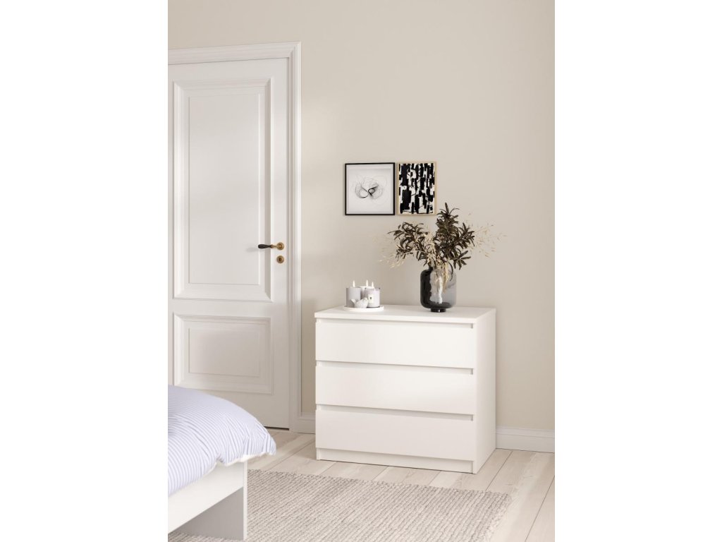Komoda Simplicity v nadčasovém minimalistickém designu bez úchytek dodá moderní nádech vašemu interiéru. Díky svému provedení nabízí dostatek úložného prostoru a najde uplatnění v kterékoliv místnosti vašeho bytu. Sortiment této řady vyrobené z kvalitního lamina nabízí noční stolky, postele, komody, botníky a další úložné prostory v široké škále barevných variant a velikostí.