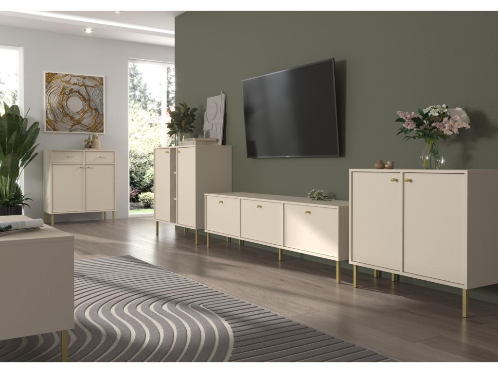 Série Tomila nabízí noční, TV i konferenční stolky, vitríny a komody v široké škále tvarů, barev a typů noh.