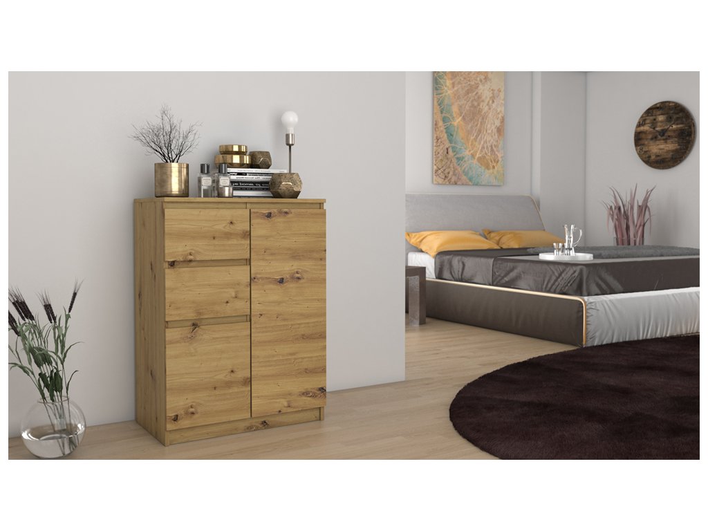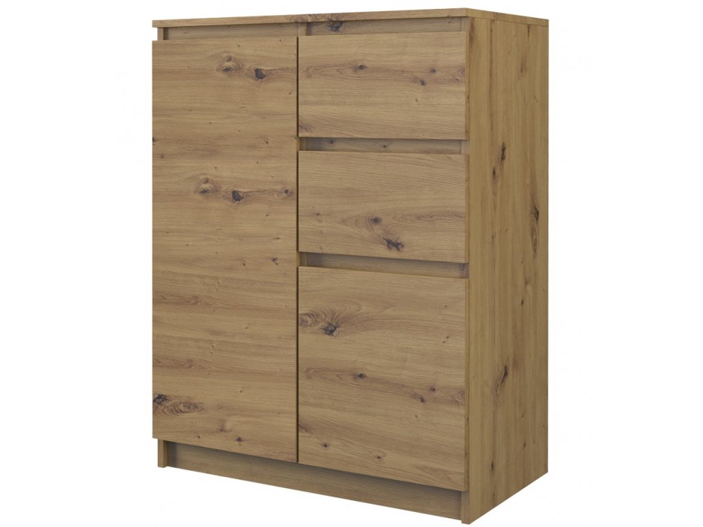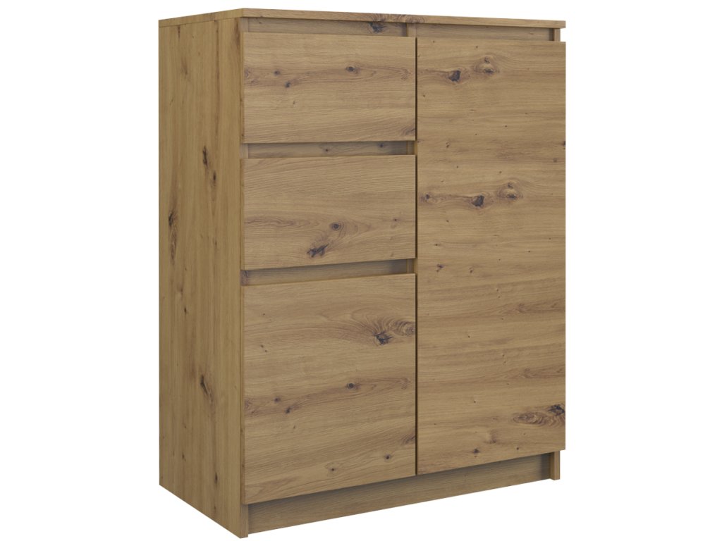 Funkční a prostorná komoda Topa v nadčasovém elegantním designu ozdobí každý prostor vašeho domu či bytu. Pohodlná bezúchytková čela zásuvek a dvířka podtrhnou moderní charakter interiéru. Komoda je vyrobená z kvalitního 16 mm lamina, hrany jsou zakončené vysoce odolným ABS materiálem.