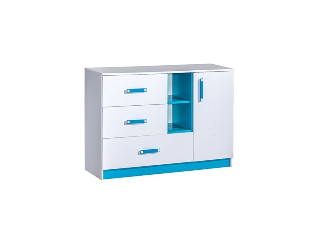 korpus: bílá + dvířka: bílá + dodatky: tyrkys