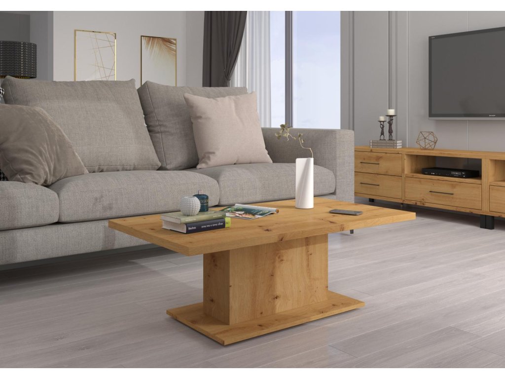 Konferenční stolek Denis je atraktivní stolek, který je vyrobený z lamina ve velmi oblíbeném a moderním dekoru dub artisan. Stolek je dostatečně velký na vše, co si budete potřebovat odložit. Hrnek s kávou nebo čajem, talíř, knihu, telefon, notebook, nebo klidně i unavené nohy po celodenním maratonu. Stolek je dodávaný v demontu. Součástí balení je montážní plánek včetně všech potřebných spojovacích materiálů. Vyobrazené doplňky a dekorace nejsou v ceně.