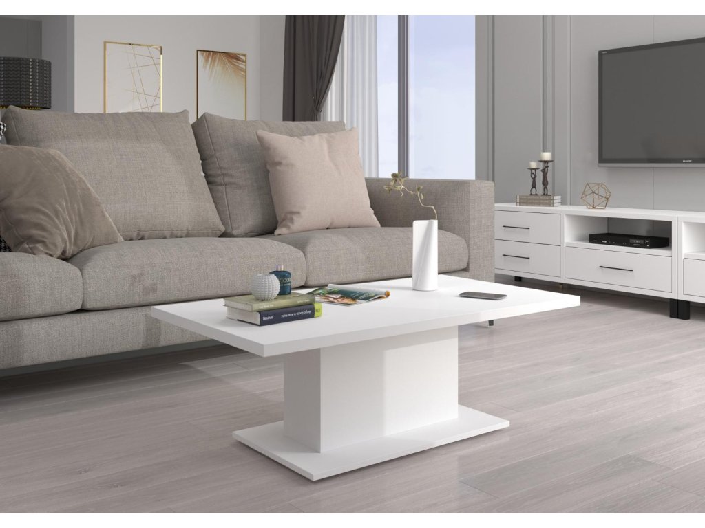 Konferenční stolek Denis je atraktivní stolek, který je vyrobený z lamina ve velmi oblíbené a moderní bílé barvě. Stolek je dostatečně velký na vše, co si budete potřebovat odložit. Hrnek s kávou nebo čajem, talíř, knihu, telefon, notebook, nebo klidně i unavené nohy po celodenním maratonu. Stolek je dodávaný v demontu. Součástí balení je montážní plánek včetně všech potřebných spojovacích materiálů. Vyobrazené doplňky a dekorace nejsou v ceně.