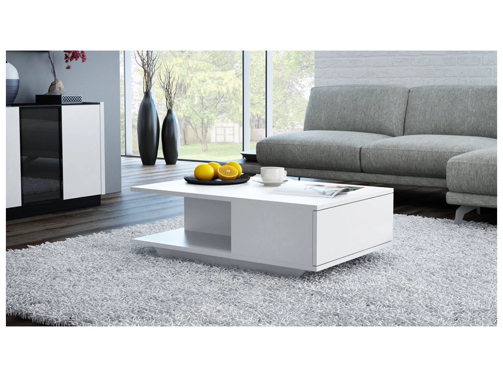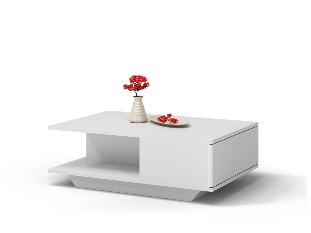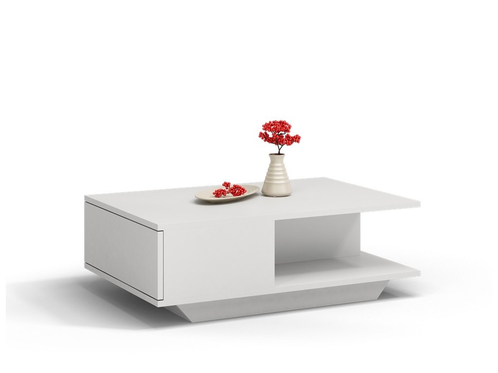 Konferenční stolek Derik v minimalistickém designu podtrhne moderní charakter každého obývacího pokoje či kanceláře. Je vyrobený ze snadno udržovatelného lamina. Stolek nabízí praktický úložný prostor s dvířky TIP-ON bez úchytek, které lze snadno otevřít lehkým stiskem. Dveře se otevírají směrem dolů do polohy, která je pro uživatele pohodlná. Chcete-li je zavřít, stačí lehce stisknout přední část.