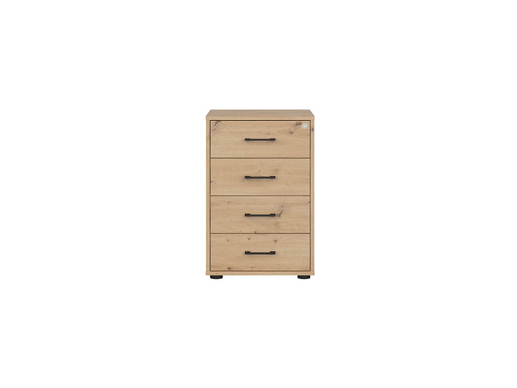 Kvalitní lamino odolné proti otěru, zajišťuje dlouhou životnost. 4 zásuvky s tichým a plynulým pojezdem. Maximální zatížení na jednu zásuvky 4 kg.
