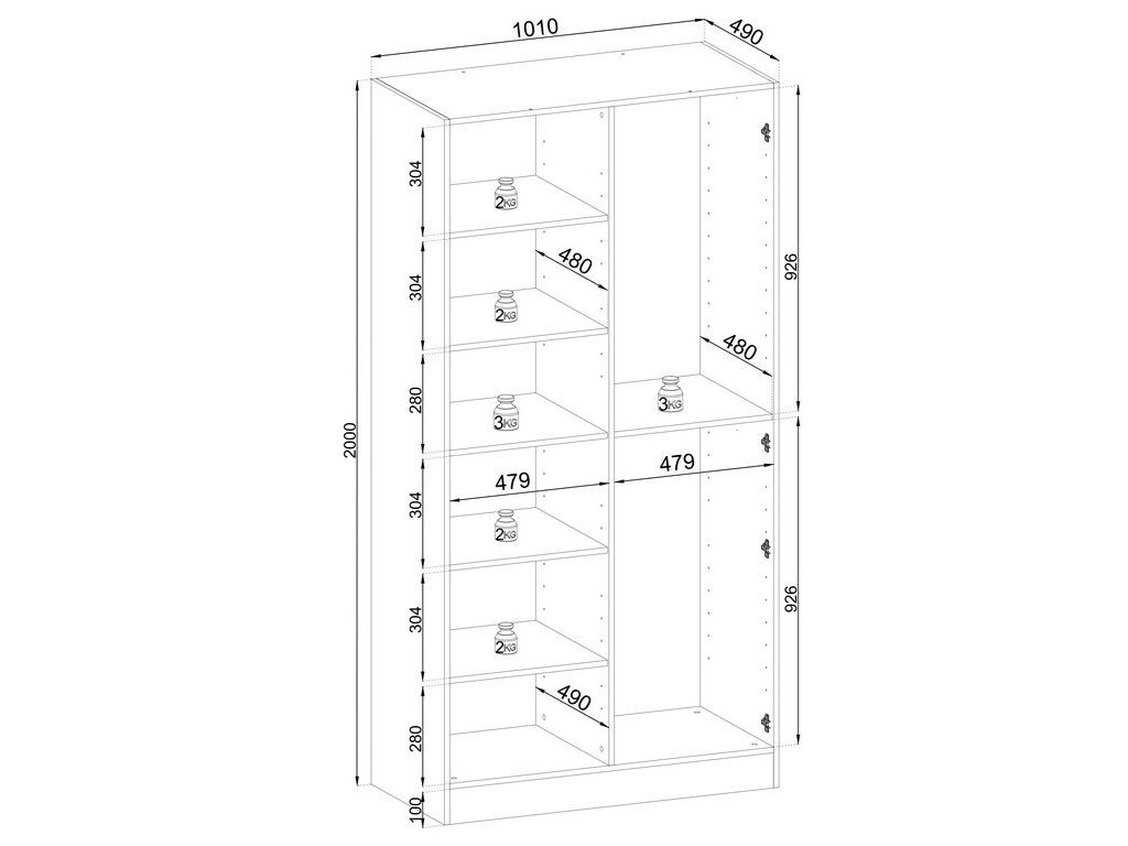 Základem je vždy korpus SANDBOX . Je možné výškové nastavení polic. Je možno dokoupit sadu 4 dalších polic. Vnitřní uspořádání korpusu je prakticky rozděleno na: