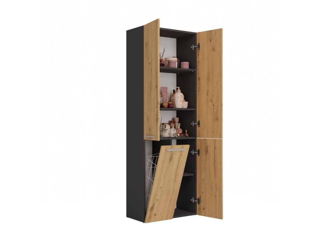 Stylová skříňka Noeli vám díky praktickému úložnému prostoru pomůže vytvořit dokonale organizovanou a útulnou koupelnu. Nadčasový design splní očekávání všech, kteří oceňují kombinaci jednoduchosti a elegance. Skříňka je vyrobená ze snadno udržovatelného lamina, hrany jsou povrchově upravené ABS plastem (vyznačuje se vysokou mechanickou a chemickou odolností).