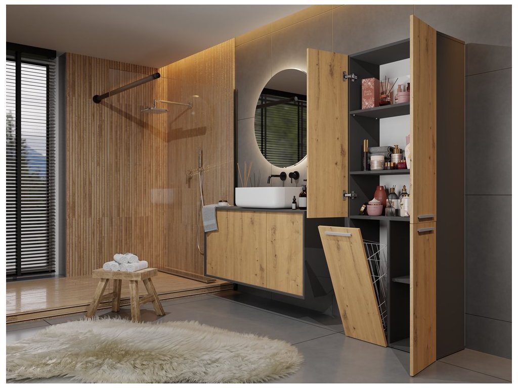 Koupelnová skříňka Noeli 3DD1K antracit/dub artisan