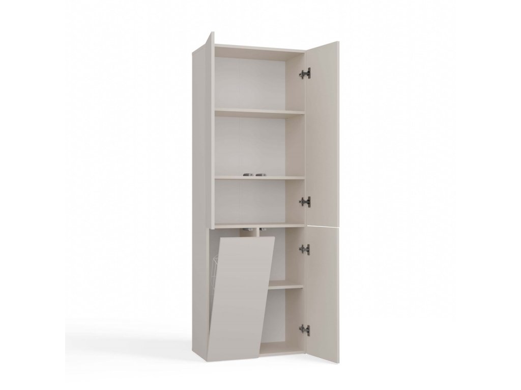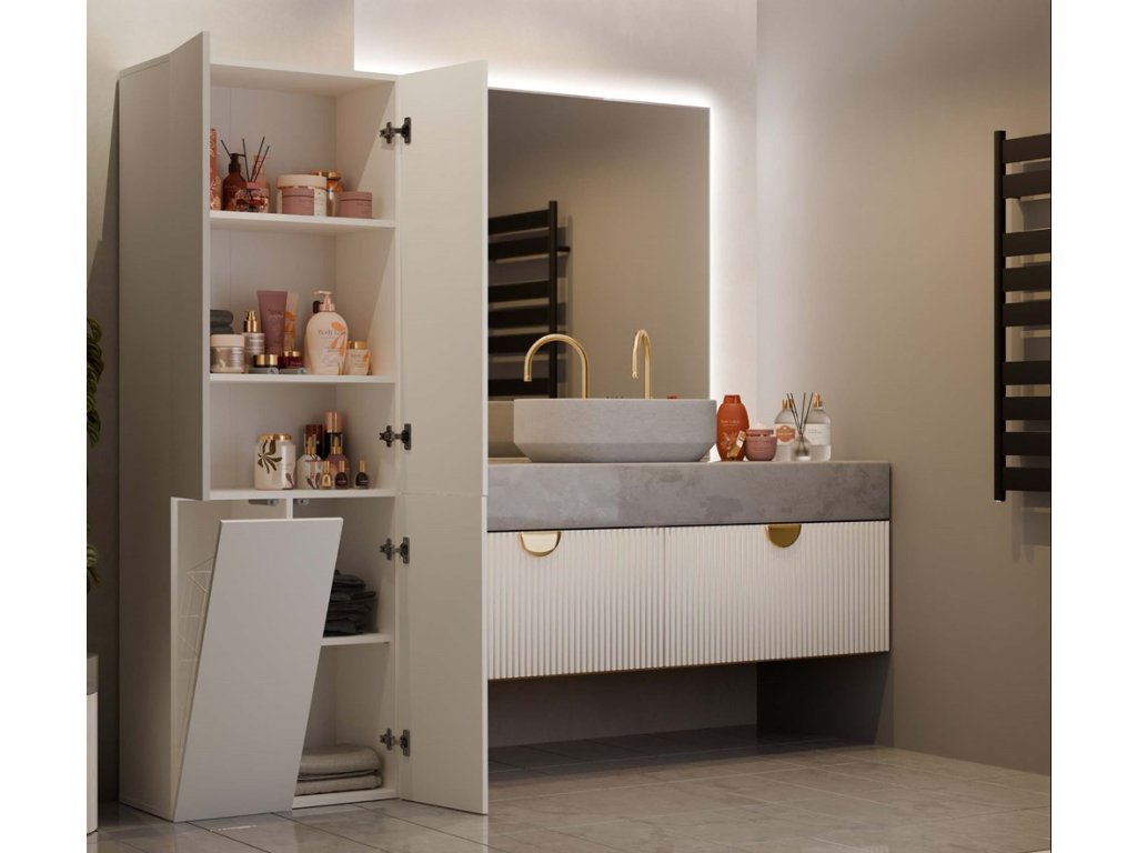 Stylová skříňka Noeli vám díky praktickému úložnému prostoru pomůže vytvořit dokonale organizovanou a útulnou koupelnu. Nadčasový design splní očekávání všech, kteří oceňují kombinaci jednoduchosti a elegance. Skříňka je vyrobená ze snadno udržovatelného lamina, hrany jsou povrchově upravené ABS plastem (vyznačuje se vysokou mechanickou a chemickou odolností). Systém TIP-ON - dvířka se otevírají po jemném zatlačení na čelo dvířek.