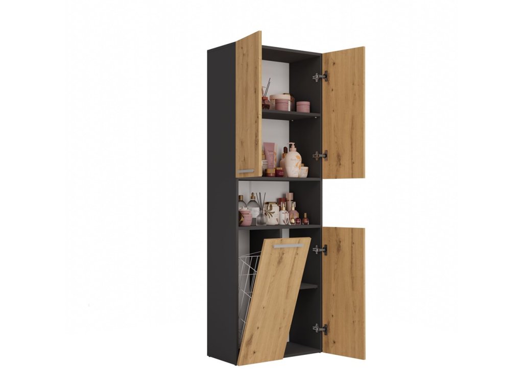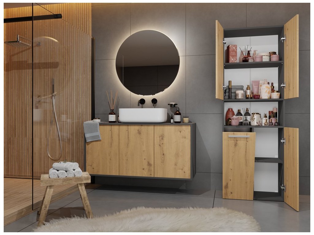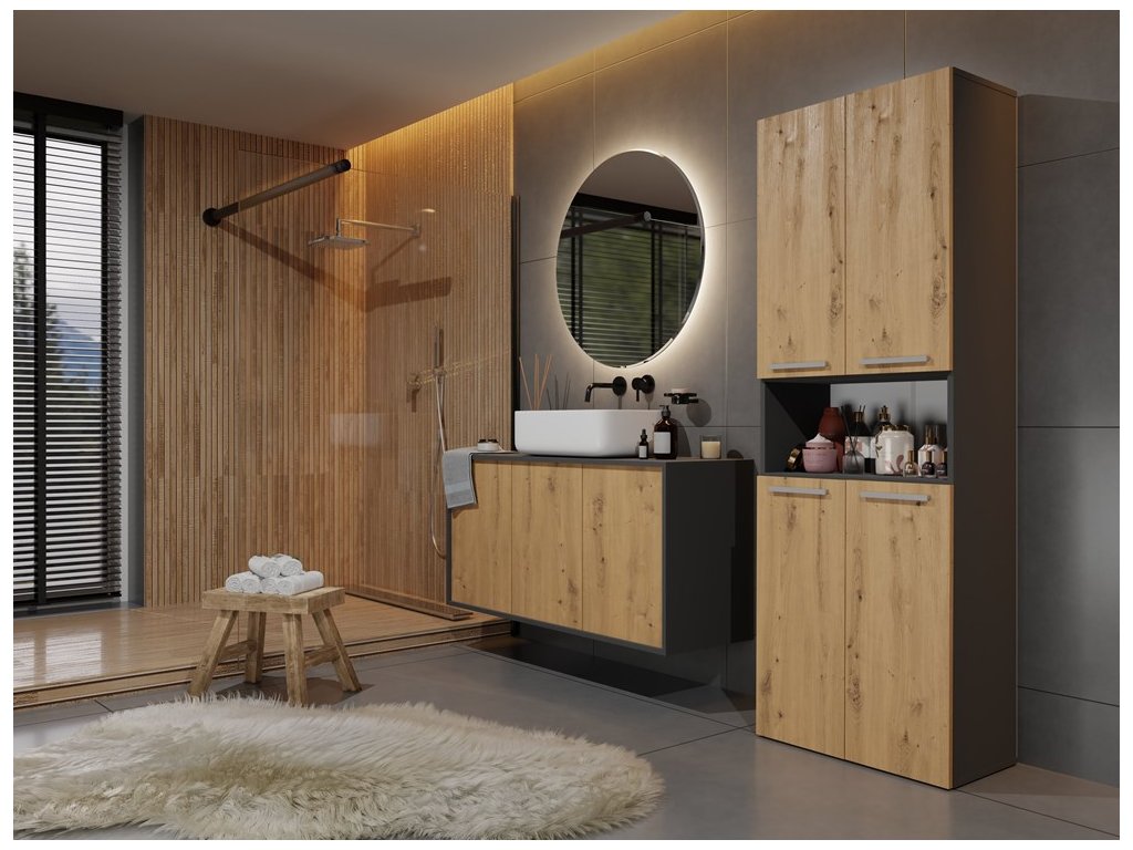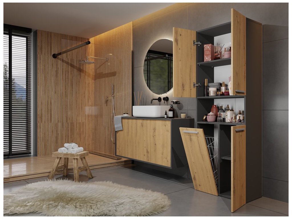 Koupelnová skříňka Noeli 3DK1K antracit/dub artisan