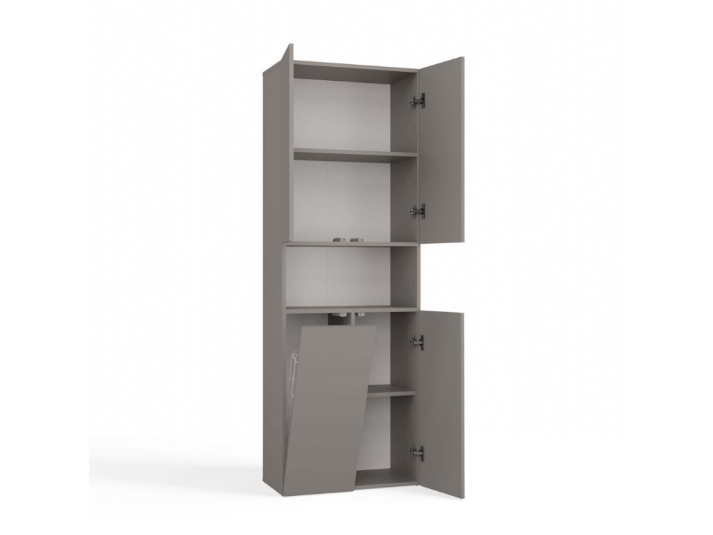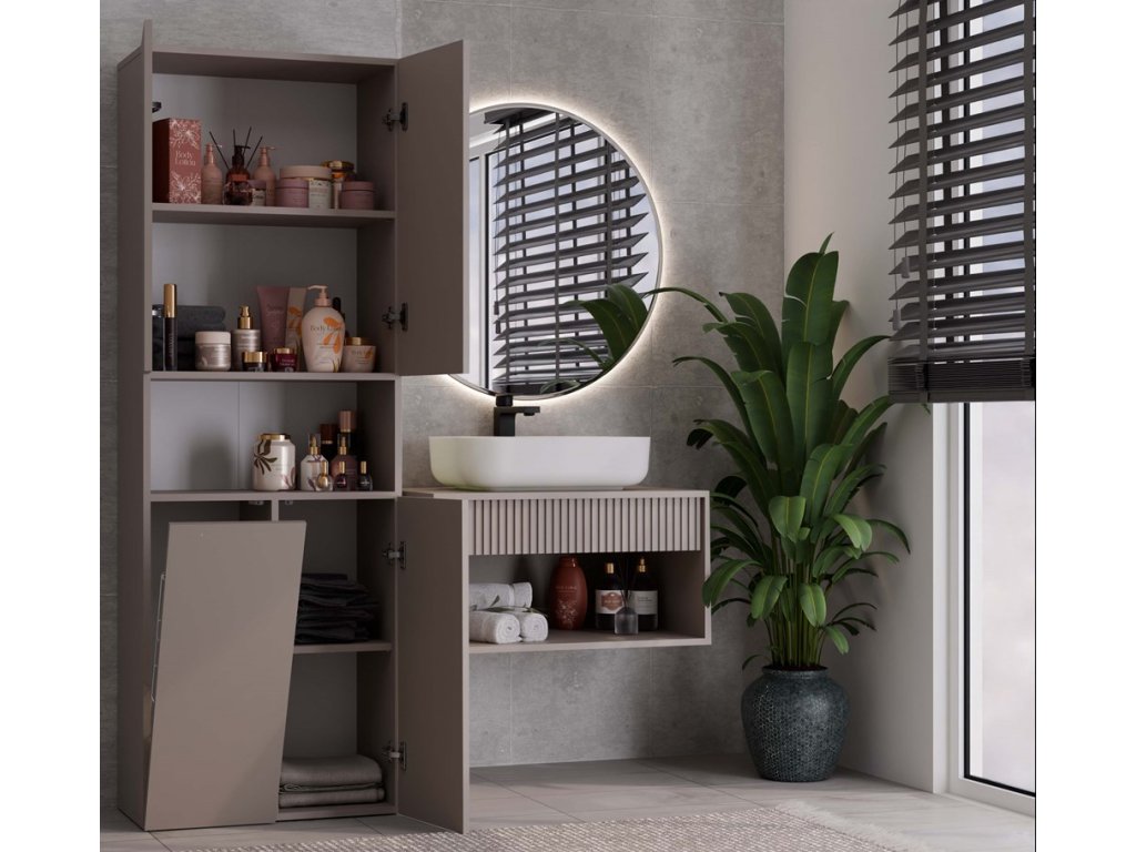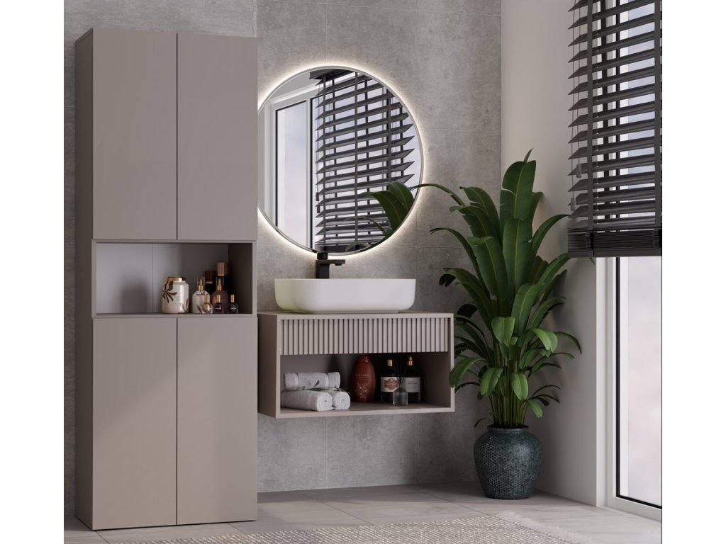 Stylová skříňka Noeli vám díky praktickému úložnému prostoru pomůže vytvořit dokonale organizovanou a útulnou koupelnu. Nadčasový design splní očekávání všech, kteří oceňují kombinaci jednoduchosti a elegance. Skříňka je vyrobená ze snadno udržovatelného lamina, hrany jsou povrchově upravené ABS plastem (vyznačuje se vysokou mechanickou a chemickou odolností). Systém TIP-ON - dvířka se otevírají po jemném zatlačení na čelo dvířek.
