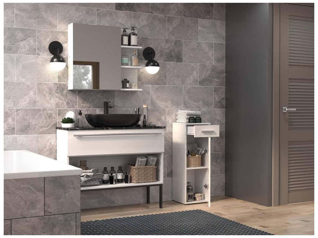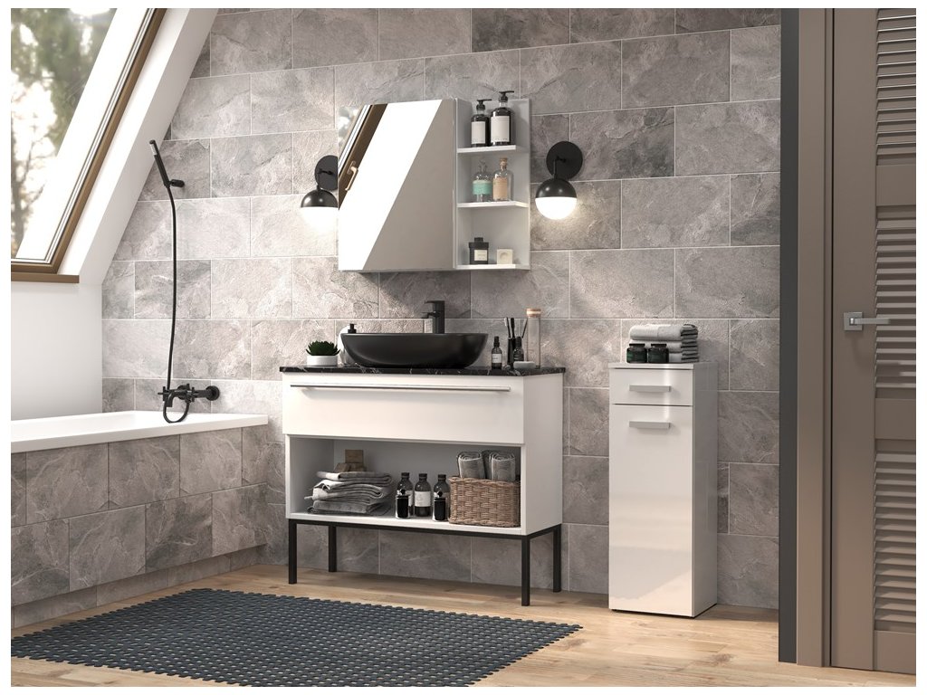 Koupelnová skříňka Noeli V 1D1S bílá/bílý lesk