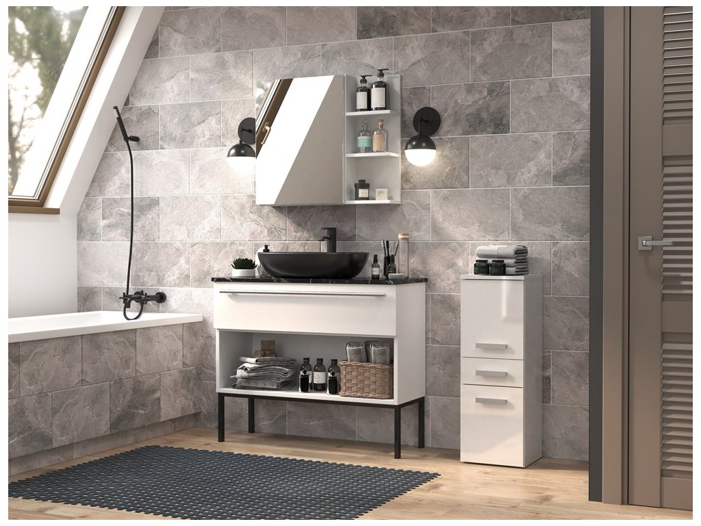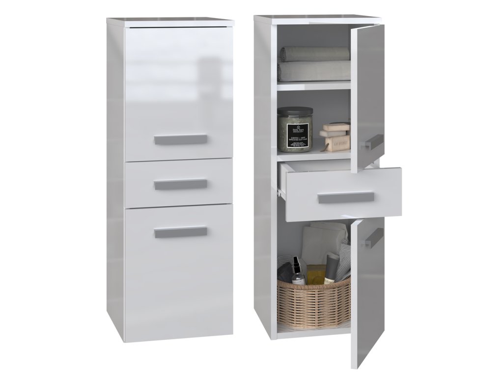 Koupelnová skříňka Noeli V 2D1S bílá/bílý lesk