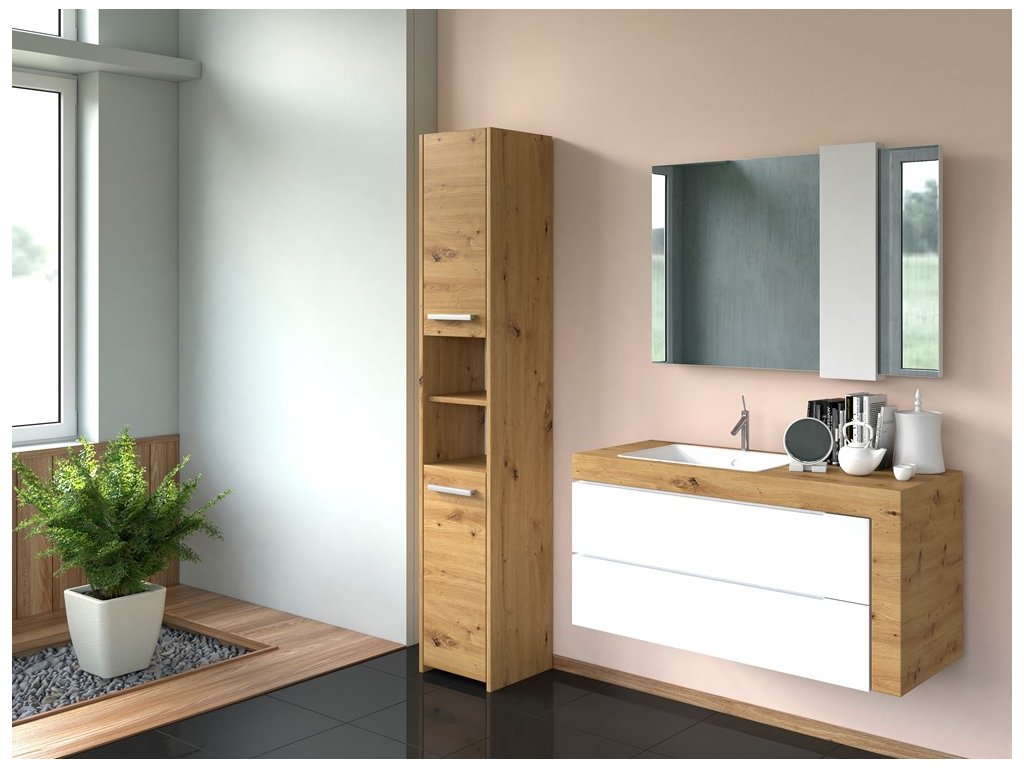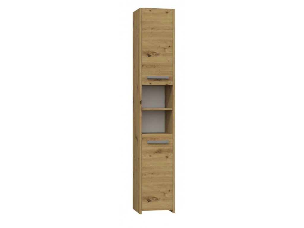 Vysokou koupelnovou skříňku Saly v minimalistickém designu ocení milovníci jednoduchosti a elegance. Je vyrobená ze snadno udržovatelného lamina, hrany jsou povrchově upravené ABS plastem - vyznačuje se vysokou mechanickou a chemickou odolností.