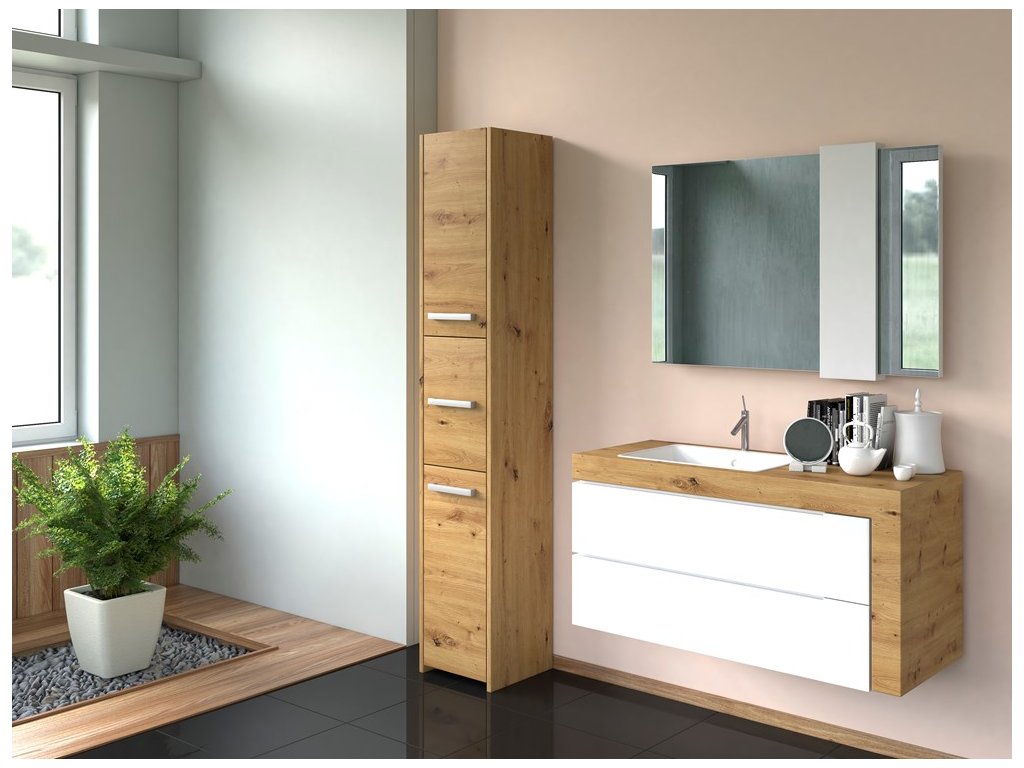 Vysokou koupelnovou skříňku Saly v minimalistickém designu ocení milovníci jednoduchosti a elegance. Je vyrobená ze snadno udržovatelného lamina, hrany jsou povrchově upravené ABS plastem - vyznačuje se vysokou mechanickou a chemickou odolností.