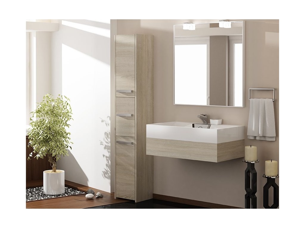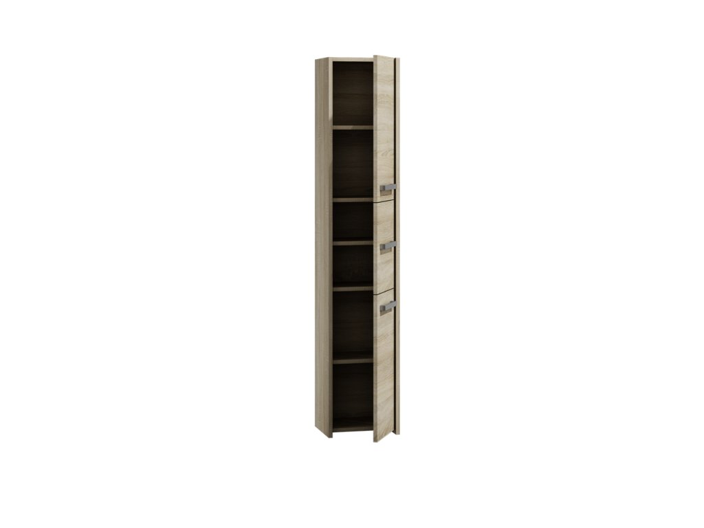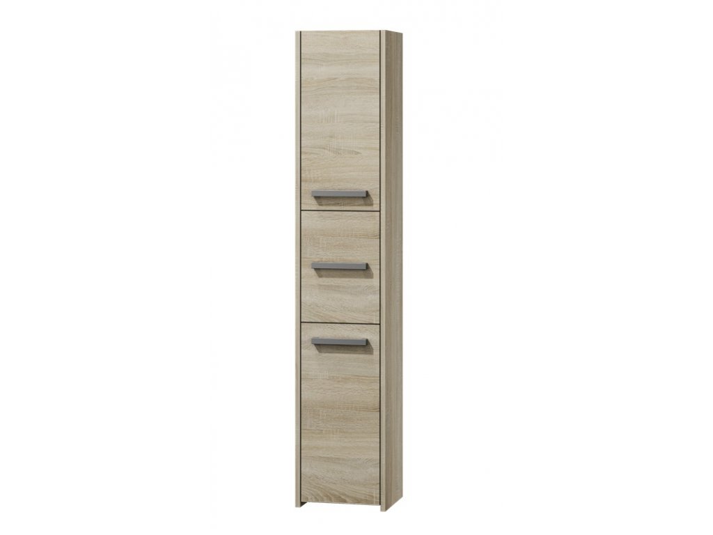 Vysokou koupelnovou skříňku Saly v minimalistickém designu ocení milovníci jednoduchosti a elegance. Je vyrobená ze snadno udržovatelného lamina, hrany jsou povrchově upravené ABS plastem - vyznačuje se vysokou mechanickou a chemickou odolností.