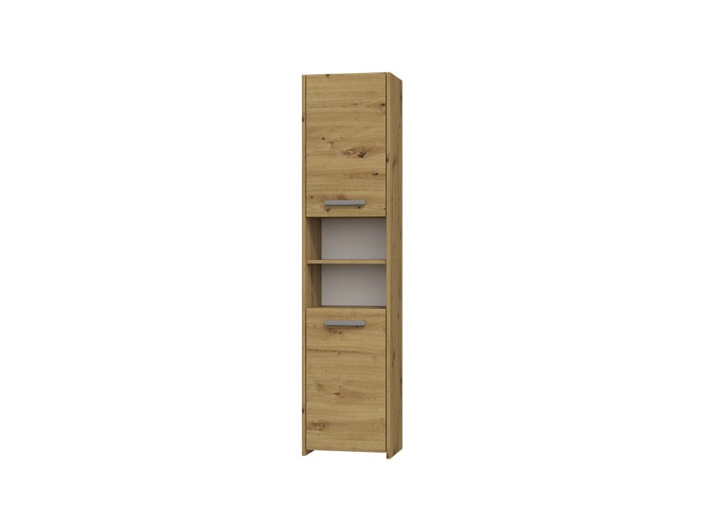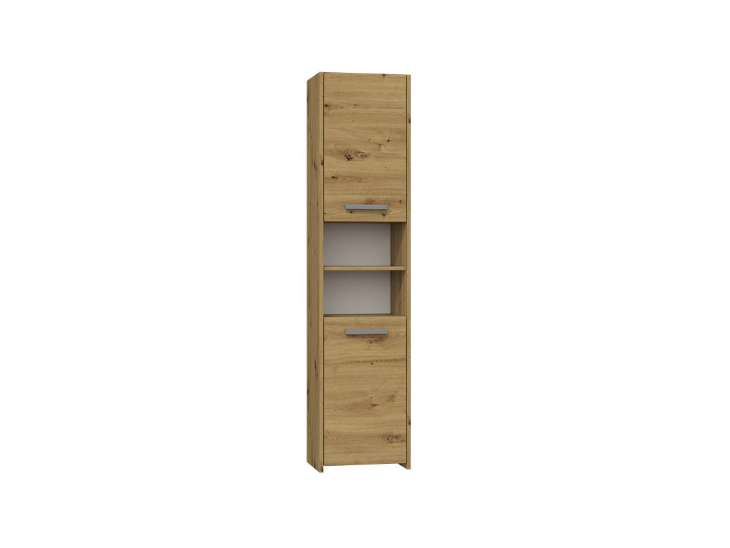 Vysokou koupelnovou skříňku Saly v minimalistickém designu ocení milovníci jednoduchosti a elegance. Je vyrobená ze snadno udržovatelného lamina, hrany jsou povrchově upravené ABS plastem - vyznačuje se vysokou mechanickou a chemickou odolností.