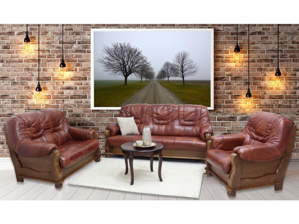 Stylová sedací souprava Royal nadchne každého, kdo má v oblibě rustikální nábytek. Její precizní a kvalitní zpracováním Vám zaručí luxus a pohodlí. Jakmile se do ní jednou usadíte, nebude se Vám chtít vstát. Polstrování sedací soupravy je vyrobené z kvalitní hovězí kůže. Konstrukce je vyrobená z masivního dubového dřeva a je vhodná i k umístění do prostoru. Sedací souprava je rozkládací. V případě potřeby ji jednoduše rozložíte k občasnému přespání Vaší návštěvy. Kůži je nutné čistit pouze za pomocí speciálních prostředků na čištění a konzervaci přírodních kůží, dřevo je třeba čistit suchým měkkým hadříkem. Vyobrazené dopňky a dekorace nejsou v ceně.