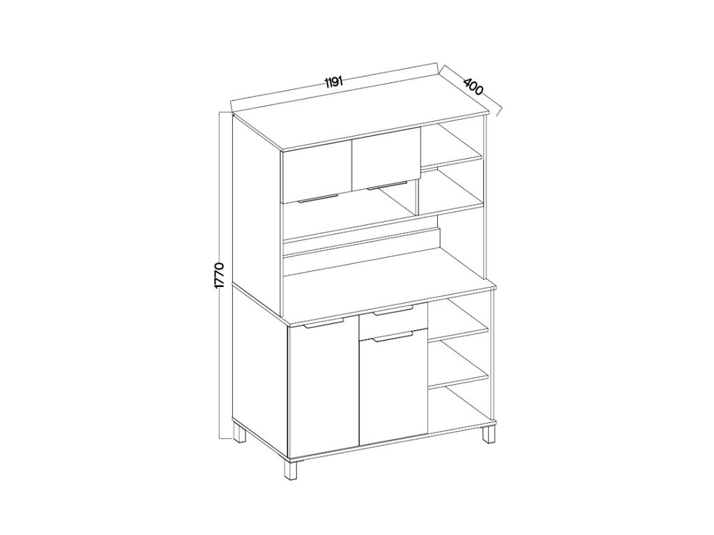 je součástí moderní sektorové kuchyňské linky Solea a součástí praktických kredenců. Kuchyňský kredenc je vhodný do domácností i do kanceláří. Nabízí prostor pro uložení nádobí, mikrovlnnou troubu či kávovar.