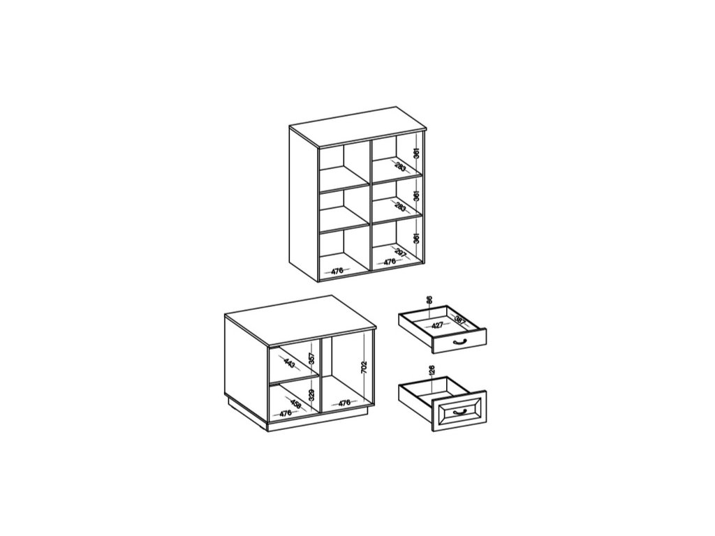 Kredenc se skládá z komody 100 GR 1D3S a nadstavby 100 GR 2D.