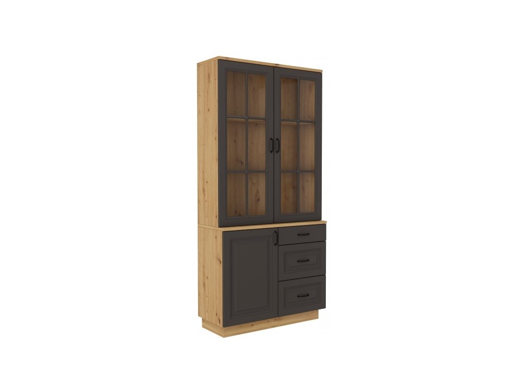 Kredenc Flawia 100 GR - komoda 1D3S + nadstavba 2D - dub Artisan + Grafit