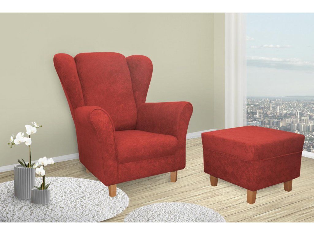 Křeslo Lord + taburet červená