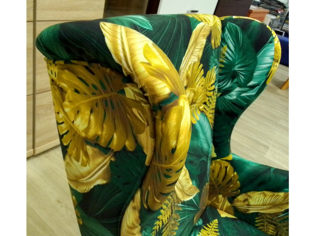 Křeslo ušák Rojal s taburetem (Damax 11-127, dřevo rustikal) - SKLADEM 1 ks