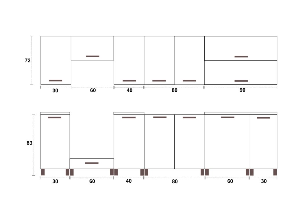 Kuchyňská linka Biodera je ideální volbou pro Vaši kuchyň. Je moderní a zároveň i praktická. Skříňky nabízejí dostatek úložného prostoru a díky nožkám na spodních skříňkách, je prostor pod linkou lépe přístupný při úklidu Korpusy skříněk jsou bílé, dvířka jsou ve vysokém lesku ve třech módních odstínech a se třemi typy úchytek. Všechny tyto varianty najdete v naší nabídce a určitě si vyberete tu nejvhodnější pro Vaši kuchyň. Skříňky jsou dodávány v demontu a můžete si je sestavit tak, jak vidíte na fotografii, nebo libovolně podle svých představ. Součástí je montážní plánek včetně všech potřebných spojovacích materiálů. Cena je uvedna za sestavu vyobrazenou na úvodní fotografii BEZ PRACOVNÍ DESKY, s úchytkami, které jsou vyobrazeny v doplňkových fotografiích. Vyobrazené spotřebiče, doplňky a dekorace nejsou v ceně.
