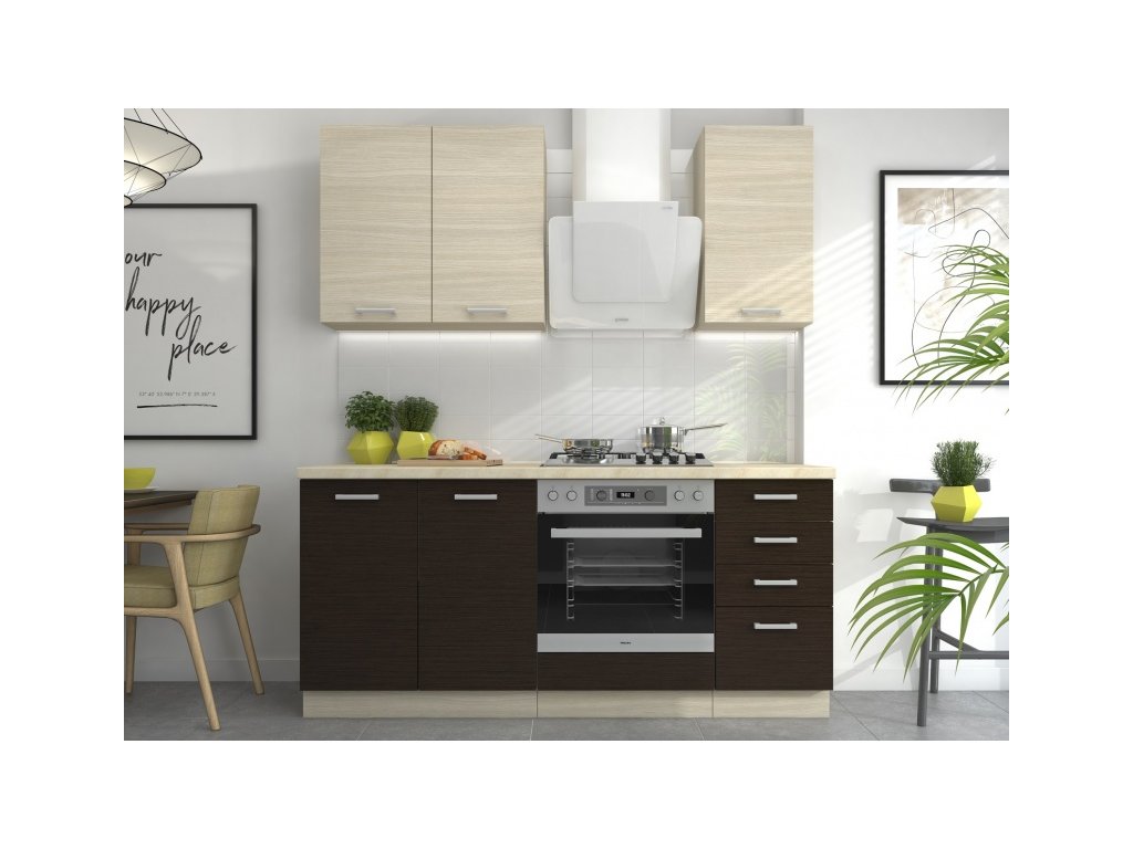 Jednotlivé skříňky dodáváme v demontu, bez spotřebičů a vyobrazených doplňků.