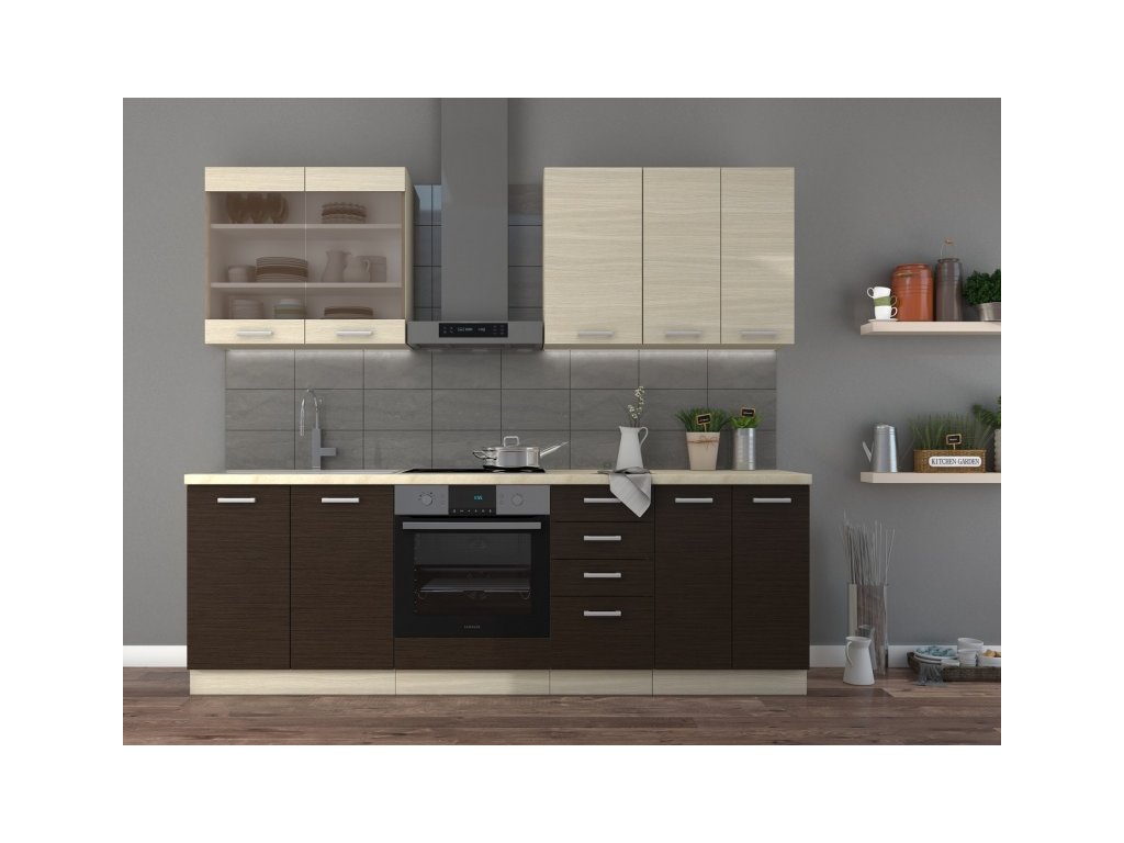 dřezovka 80 ZL 2F (80/82/52 cm), vestavná trouba 60 DG (60/82/52 cm), zásuvková 40 D 4S (40/82/52 cm), dvoudveřová 60 D 2F (60/82/52 cm)