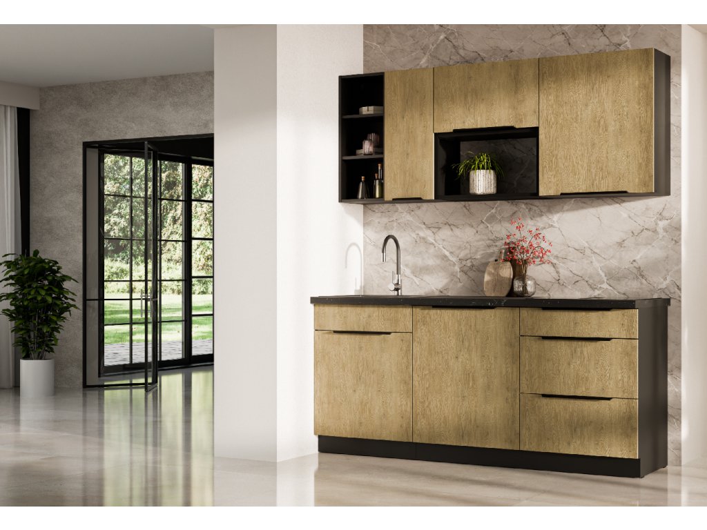 Moderní sektorové kuchyňské linky Cremona BL je v barevném provedení černý mat (korpus) a dub Cremona (dvířka). U skříněk s výklopem se dvířka zvedají pomocí plynových pístů, Cargo skříňky jsou výsuvné, všechny ostatní skříňky (mimo rohových) a zásuvky jsou opatřeny SYSTÉMEM TICHÉHO DOVÍRÁNÍ.