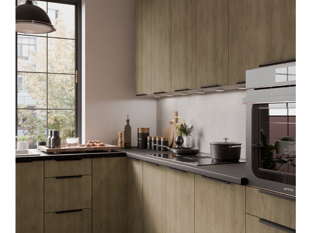Moderní sektorová kuchyňská linka Cremona WH je v barevném provedení bílá (korpus) a dub Cremona (dvířka). U skříněk s výklopem se dvířka zvedají pomocí plynových pístů, Cargo skříňky jsou výsuvné, všechny ostatní skříňky (mimo rohových) a zásuvky jsou opatřeny SYSTÉMEM TICHÉHO DOVÍRÁNÍ.