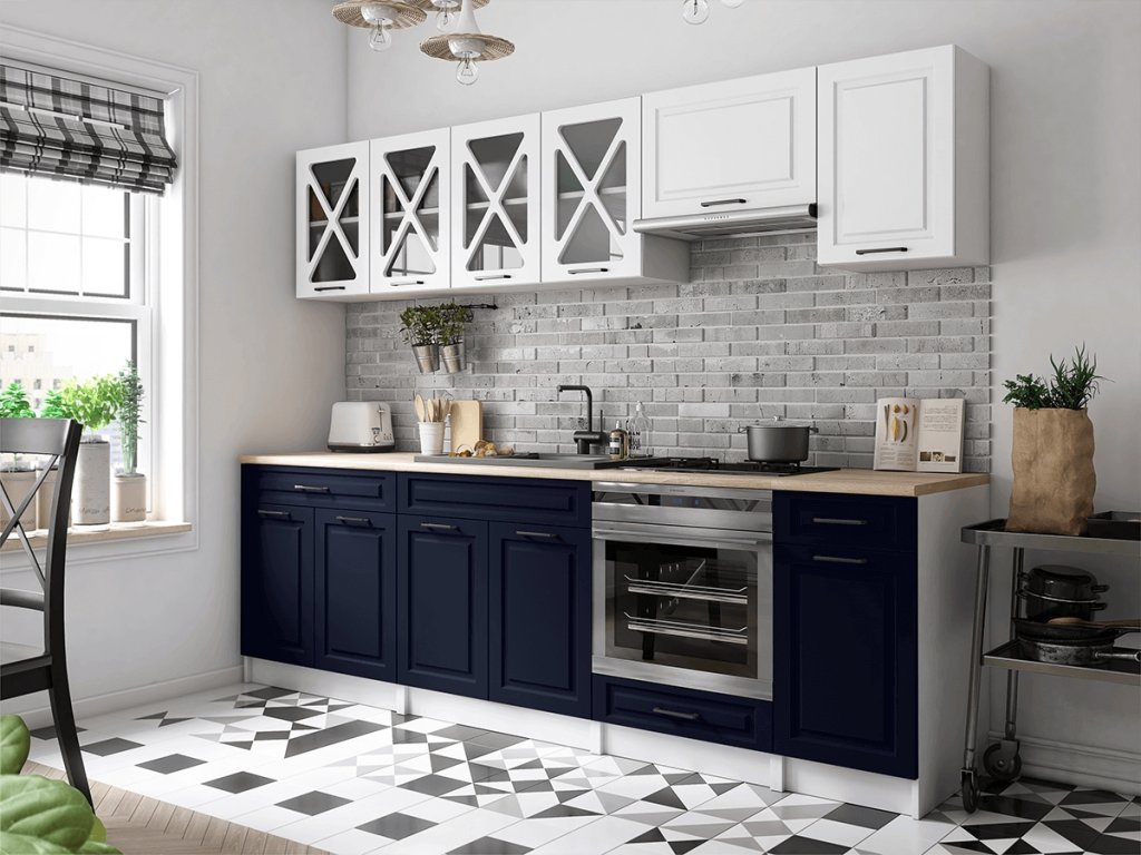 Kuchyňská linka Gréta 260/260 bílá/tm.modrá MAT