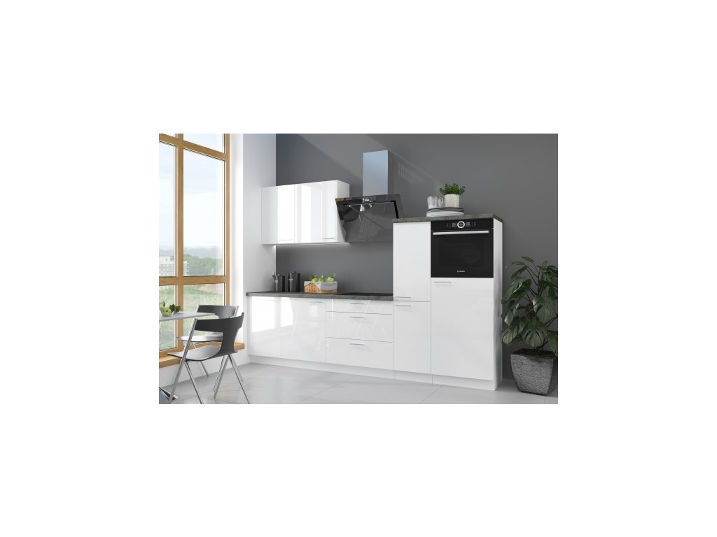 Moderní kuchyňská linka v barevném provedení bílý mat (korpus) a MDF bílý lesk (dvířka). Tato linka má atraktivní design a je tak ideální volbou při výběru Vaší kuchyně. U skříněk s výklopem se dvířka zvedají pomocí plynových pístů, Cargo skříňky jsou výsuvné, všechny ostatní skříňky (mimo rohových) a zásuvky jsou opatřeny SYSTÉMEM TICHÉHO DOVÍRÁNÍ. Úchytky jsou kovové.
