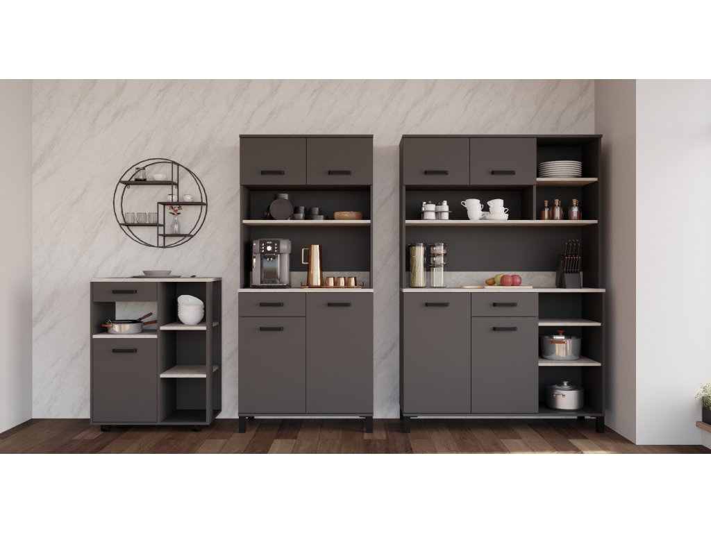 je příbuzná k moderní sektorové kuchyňské lince Nessa/ANT a součástí praktických kredenců. Sestava je vhodná do domácností i do kanceláří a nabízí prostor pro uložení nádobí, mikrovlnnou troubu či kávovar. Obsahujem této sestavy je i servírovací stolek, který lze dle Vaší potřeby přemístit z jedné místnosti do místnosti druhé.