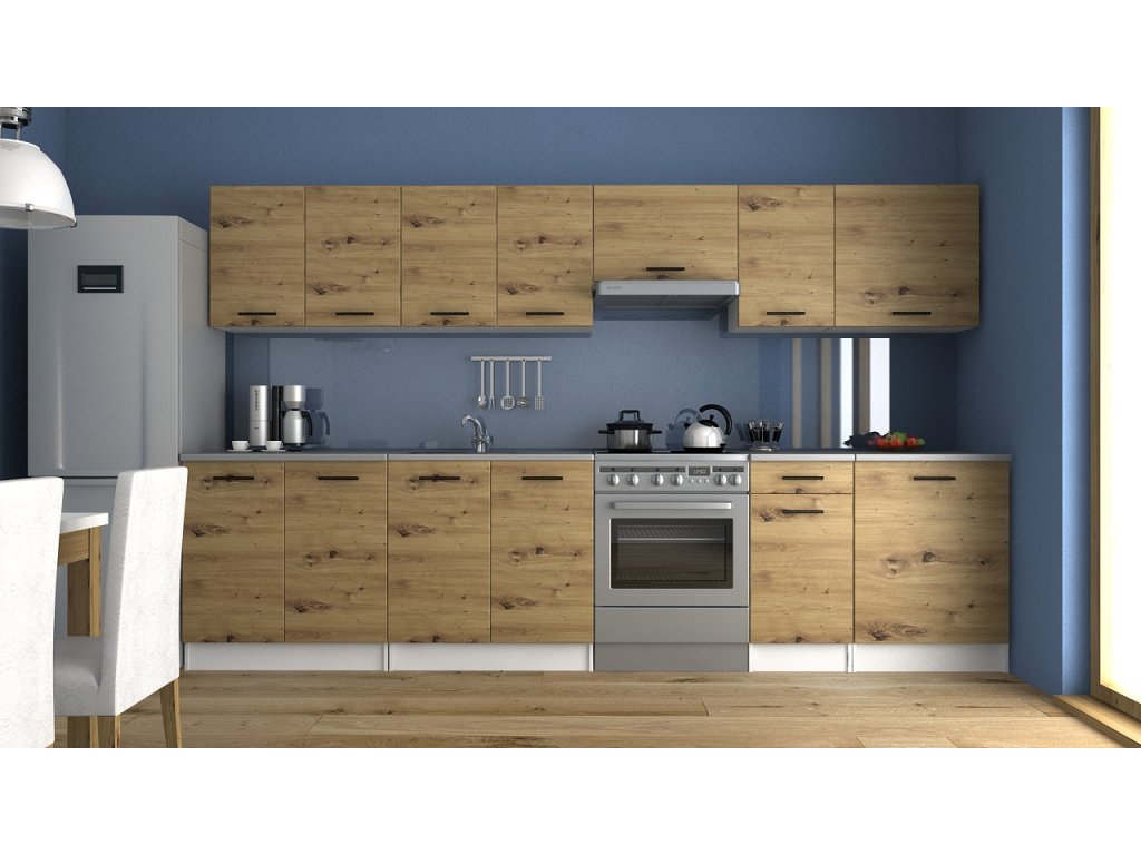 Kuchyňská linka Luigi je ideální volbou pro Vaši kuchyň. Je moderní a zároveň i praktická. Skříňky nabízejí dostatek úložného prostoru. Je vyrobená z lamina, které je odolné a snadné na údržbu. Díky svým rozměrům je vhodná i do malých kuchyní. Skříňky si můžete sestavit libovolně. Kuchyňská linka je dodávaná v demontu. Součástí balení je montážní plánek včetně všech potřebných spojovacích materiálů. Cena je uvedena za sestavu vyobrazenou na úvodní fotografii BEZ PRACOVNÍ DESKY. Kuchyň nabízíme v několika rozměrech i dekorech.Vyobrazené spotřebiče, dřez a dekorace nejsou v ceně.