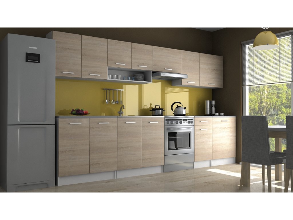Kuchyňská linka Luigi je ideální volbou pro Vaši kuchyň. Je moderní a zároveň i praktická. Skříňky nabízejí dostatek úložného prostoru. Je vyrobená z lamina, které je odolné a snadné na údržbu. Díky svým rozměrům je vhodná i do malých kuchyní. Skříňky si můžete sestavit libovolně. Kuchyňská linka je dodávaná v demontu. Součástí balení je montážní plánek včetně všech potřebných spojovacích materiálů. Cena je uvedena za sestavu vyobrazenou na úvodní fotografii BEZ PRACOVNÍ DESKY. Kuchyň nabízíme v několika rozměrech i dekorech.Vyobrazené spotřebiče, dřez a dekorace nejsou v ceně.