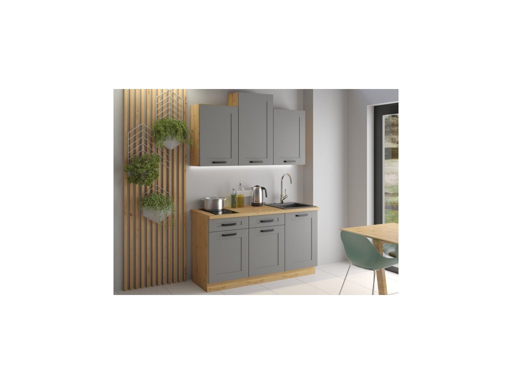 Moderní kuchyňská linka v barevném provedení dub Artisan (korpus) a MDF DustGrey (dvířka s prolisy). Tato linka má atraktivní design a je tak ideální volbou při výběru Vaší kuchyně. U skříněk s výklopem se dvířka zvedají pomocí plynových pístů, Cargo skříňky jsou výsuvné, všechny ostatní skříňky (mimo rohových) a zásuvky jsou opatřeny SYSTÉMEM TICHÉHO DOVÍRÁNÍ. Úchytky jsou kovové.