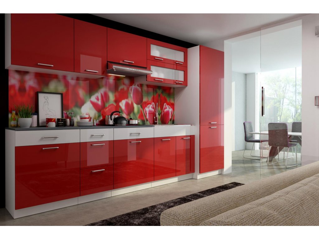 Kuchyňská linka Sanader 300 červený lesk/bílý pruh